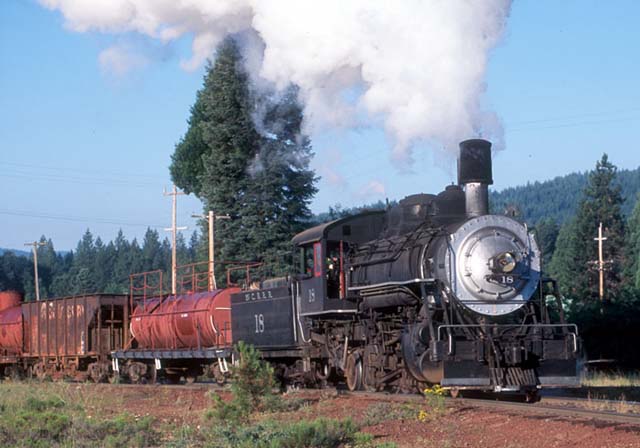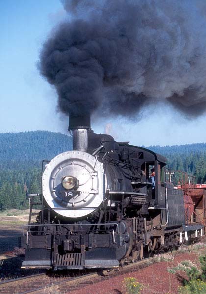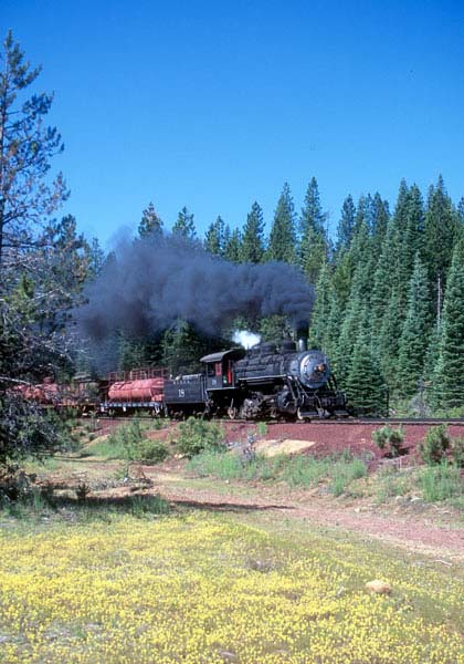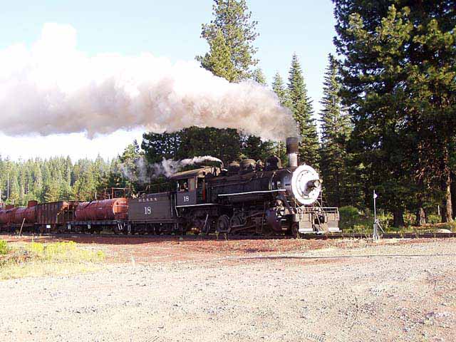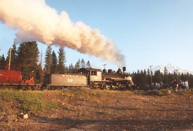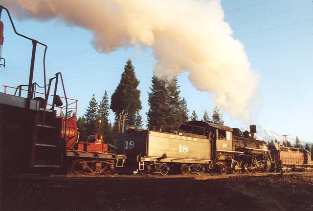 | On 3 July 2005, the #18 came out for two days worth of excursions. Trains Unlimited Tours routed their special excursion bound for the National Railway Historical Society convention in Portland, OR, through McCloud, and the #18 did some photo runbys with a freight consist in the McCloud yard for the passengers on that special. Once the special departed the #18 took the freight consist and headed east for Bartle on a special trip chartered by Martin Hansen for a small group of paying photographers. |