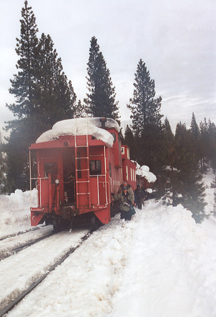 Some of the photographers on the trip reboarding the caboose after a photo shoot. |