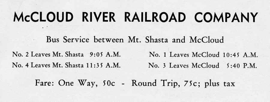 and Mt. Shasta City. The service also prompted the already established bus line to file a series of lawsuits against the railroad, claiming