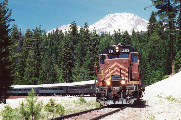 The dinner train departing McCloud in May 2004. George Landrock photo. |