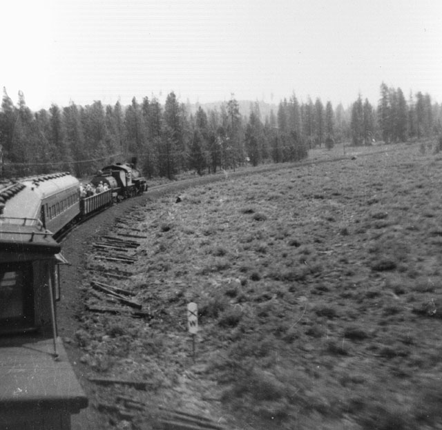 One of the excursions rounding the wye at the top of the McCloud yard. Jeff Moore collection.