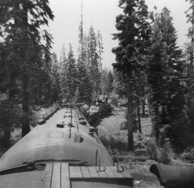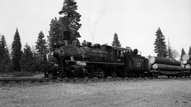 The first railfan excursion over the McCloud River Railroad operated on 12 June 1948. Thirty excursionists rode in three cabooses tacked onto the end of the daily freight to Pondosa. The excursionists ate lunch at the lumber company cookhouse before returning to McCloud. The Western Railroader magazine proclaimed the trip to be the best yet operated on the west coast. The second and third railfan excursions operated on consecutive weekends in June 1950. On Saturday, 10 June, the Northern California Railroad Club sponsored an excursion that operated from McCloud to Lookout and return, and then on 17 June the railroad operated a McCloud to Pondosa excursion as part of the Pacific Coast Region of the National Model Railroad Association annual convention, held that year in Dunsmuir. Both of these excursions used either the #26 or #27, gondolas and coaches leased from the Southern Pacific, and McCloud cabooses. The final excursions of the early era operated in 1953. The Northern California Railroad Club sponsored a "Pondosa Logger" featuring the #25 hauling six log loads, a gondola, and three cabooses from McCloud to Pondosa on 23 May, followed on 22 June 1953 with a second excursion making the round trip to Pondosa. Other than the 1955 specials marking completion of the Burney line, the 1953 trips proved to be the last until the #25 started its excursion career in 1962. |