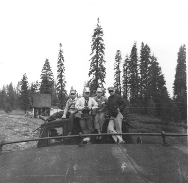 #16 posing for photographs on the bridge over what would become Highway 89 at Pondosa Upper