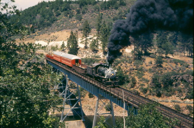A special trip to Burney on another day is seen here crossing the Lake Britton Bridge. Photo by and courtesy of Ron Abrahamson. |