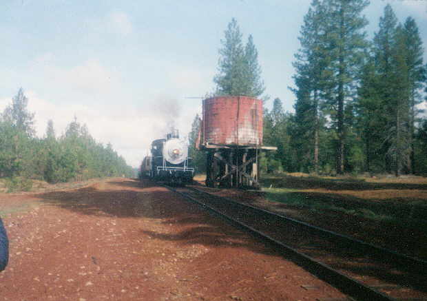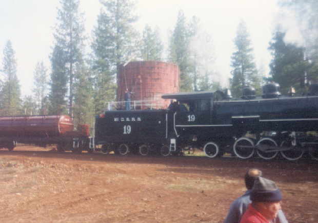 (Picture #115) Bartle, CA, 4/1994. Volunteers restored the Bartle Tank to operating condition in the weeks before the excursion, and the #19 was able to take on water from the tank. |
