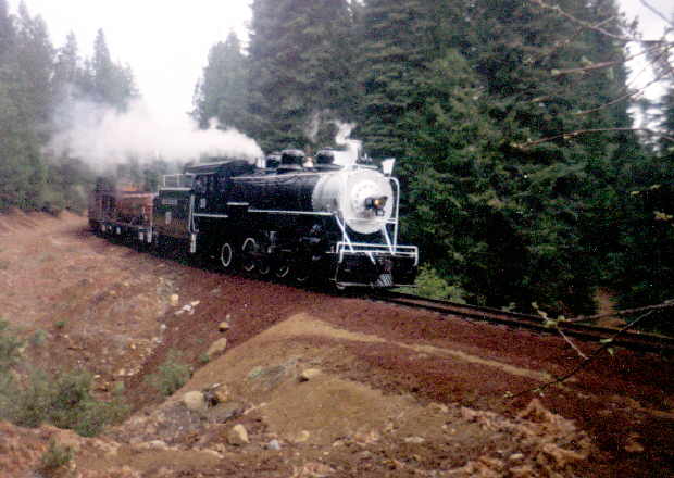 McCloud River Railroad Company #19 was built in 1915 by the Baldwin Locomotive Works as their construction #42000 for the Caddow & Choctaw Railroad as their #4. From there it went to the Choctaw River Lumber Company as their #4, then to United Mining & Smelting Company in Mexico as their #2069. The McCloud River Railroad was in need of larger power in the mid-1920’s. The railroad at that time consisted of the mainline from Mt. Shasta City to Pondosa, passing through McCloud, Bartle, and Car A in the process. Freight traffic was primarily logs from the Bartle and Pondosa area traveling west to McCloud, and finished lumber traveling west from McCloud to Mt. Shasta City. The railroad at this time owned five small prairies, three large mikados, one mogul for the passenger train, and two three-truck Shays for use in the logging operations taking place on Black Fox Mountain north of Bartle. The railroad desired more large power, and in early 1924 the company acquired United Mining & Smelting Company #2069. The machine became #19 on the McCloud roster. The #19 served the McCloud well until 1953, when it was displaced by diesels. Retirement did not last long, as the neighboring Yreka Western Railroad (YW) was searching for larger locomotives for it’s nine miles of track. The #19 was quickly picked up by the YW, where it kept it’s #19. The #19 was displaced by diesels again on the YW in 1958, but the YW management had a fondness for steam power, and it stayed on the property in excursion service until 1970. The owners of the YW were starting up a new excursion operation on the Oregon Pacific & Eastern Railroad out of Cottage Grove, Oregon, and the #19 was moved north in 1970. The #19 stayed on the OP&E until 1988, when the excursion operations ended and the locomotive returned to Yreka. The YW started excursion operations in the summer of 1986, and the #19 became the primary power for the excursion trains starting in 1989. Trains Unlimited Tours brought the #19 back to Yreka in 1994 for one weekend’s worth of excursions. The #19 had been back to McCloud once before, for a double headed excursion with the #25 in 1962. On Saturday 30 April the #19 led a train from McCloud to Burney and return. The locomotive hauled a photo freight consisting of fire car #1711, the four ex-SP ballast hoppers (MCR #’s 1901-1904), and caboose #101. The passenger consist was McCloud flat #824 and an articulated coach set painted in SP Daylight colors. McCloud diesel #39 was tucked in behind the passenger sets, and it provided most of the power for the Saturday trip. VIP Caboose #553 brought up the rear of the train. Sunday 1 May saw the #19 pull the fire car and the passenger consist from McCloud to Hambone by itself, where it was overtaken by a Lookout-bound freight pulled by the #39. The passenger consist was added onto the end of the freight, where it and the passengers continued on to Lookout and return to McCloud. The #19 then left the fire car at Hambone and ran light back to McCloud. The #19 was returned to Yreka a short time later, where it continues in operation to this day. |