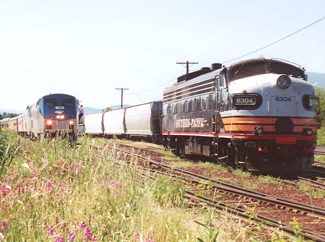 that the F-unit could not lead the train north, and it was set out in the yard. The Amtrak units are
