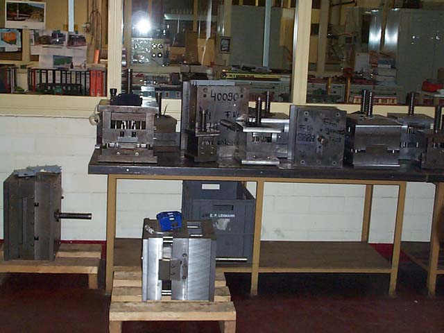 Here are some more molds that are used. The one large mold on the floor in the front makes the front end for the RhB Arosa Control Cab Car. Locomotives can use dozens of molds. The price for the molds for the Mikado was over $115,000.00!!