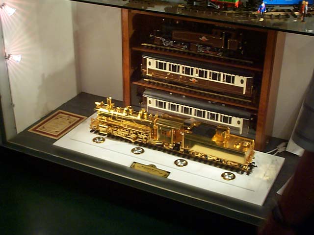Here is another locomotive in the display case. The entire locomotive has been plated in 14 karat gold and it is the only one ever made.
