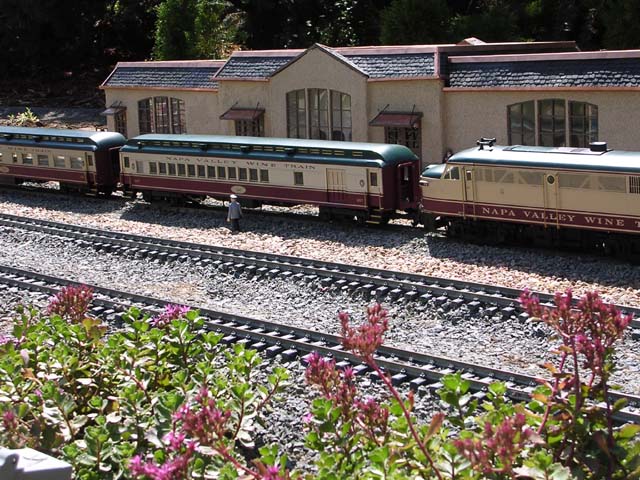 These pictures were taken during the National Garden Railway convention that was held in Denver in August of 2004. Our layout was on tour during the 4 days of the convention. We had over 900 people visit the layout in a 5 hour period and another 150 show up for a BBQ that night. During that day we went through over 118 DOZEN cookies!