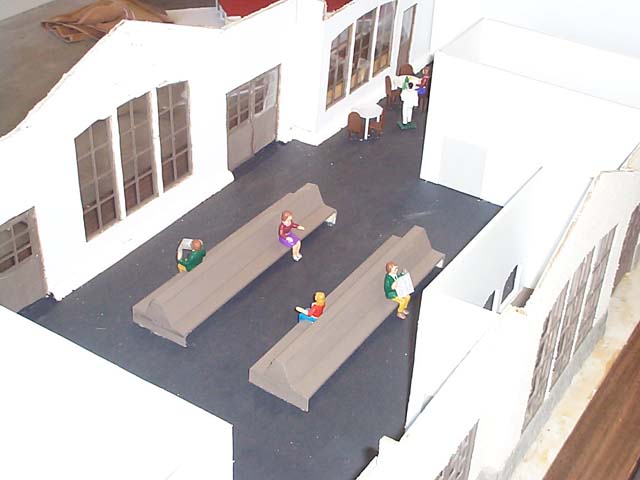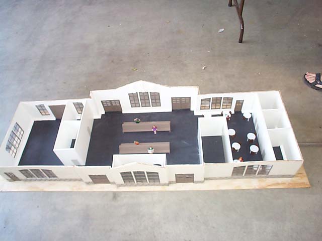 Passenger Station Project This was my architecture project for my senior year. It worked out well, because not only did I get to work on trains in school, I got school credit for it!! Luckily for me, my teacher Mr. Goodin had seen my train layout the previous year when my brother had him for a club sponsor and invited him to our open house. He was more than willing to bend the requirements so that I could do it. I still had to do all the drawings and all other work in the class, but I could change the scale from 1:48 to 1:24 and I could make it what ever size I wanted. I also was taking residential architecture and he let me do commercial architecture in his class to make the station. He even gave me a full wall in the workshop to build it.