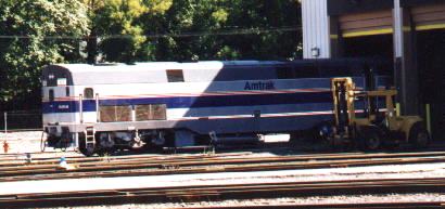 P42 102 sticking out of the Albany - Rensselaer shops (late summer 97).