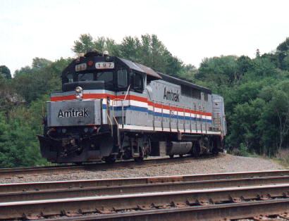 Here's a shot of GP40TC 197 in front of FL9 488 on the wye at Albany-Rensselaer, early 1990's. Photo by Bob LaMay.