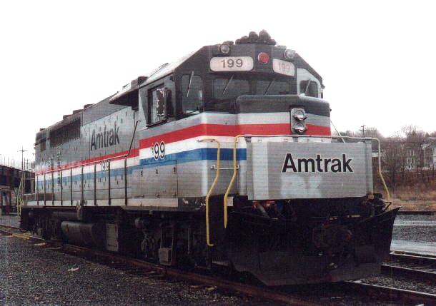 Here is a shot of 199 in the Albany-Rensselaer yard in the early 90's when she was assinged to regular passenger service. By Bob LaMay