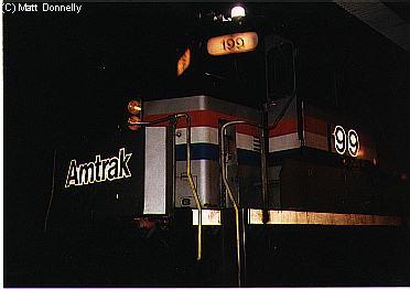 Amtrak GP40TC 199 in Syracuse, NY heading westbound around January 1995. In about an hour later that night, I saw the 198 going east on another train.