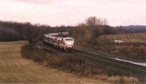 P42 45 leads the Lake Shore seen from Oakland Street Bridge 2/98.