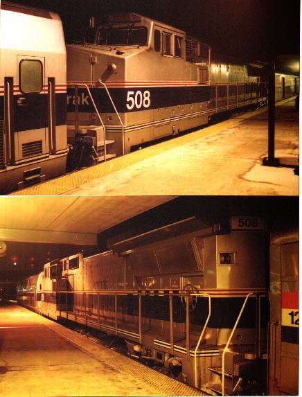 P32-8BWH P32-8BWH 508 seen in the Phase IV paint as the second unit on train 49/449 in Syracuse, NY. Winter of 2000.
