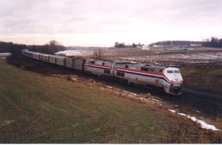 P42 72 and 25 lead the Lake Shore 48/448 seen from Oakland Street Bridge, 2/98.