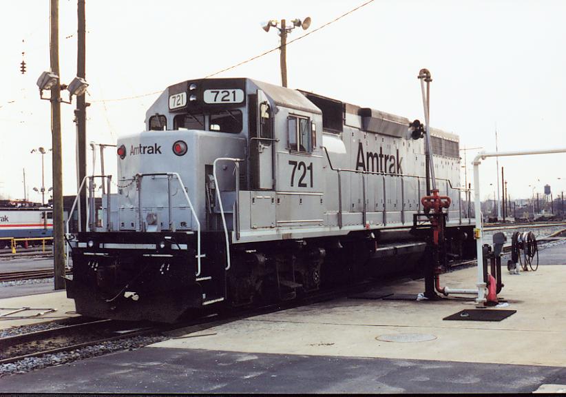 721 Amtrak work engine 721 in the Wilmington, DE yard, Spring 1999.
