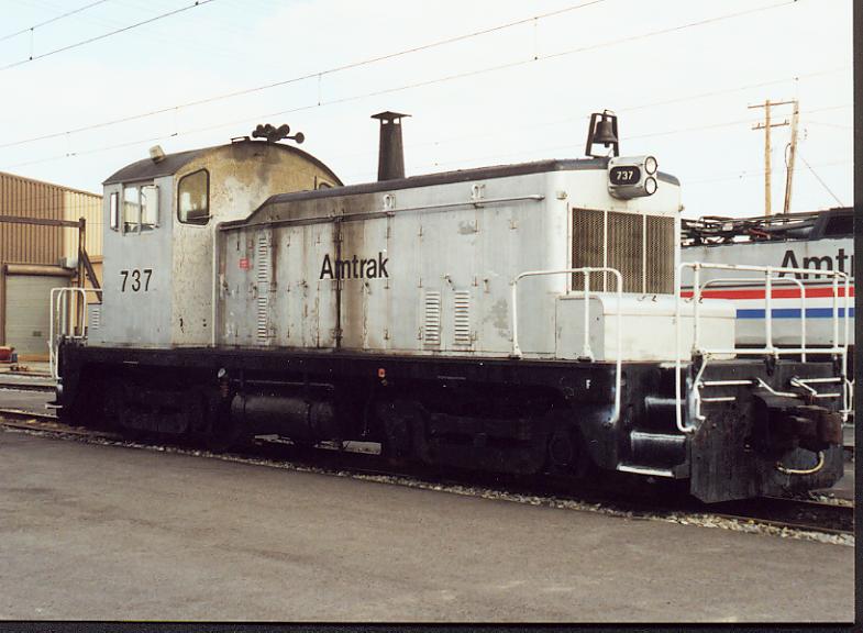 737 Amtrak work engine 737 in the Wilmington, DE yard, Spring 1999.