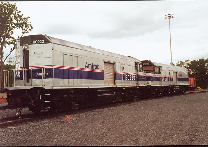 Cabbage 90220 and 90214 Amtrak former F40s, convereted into Cab control/Baggage units AKA "Cabbage" cars, #90220 and 90214 in Albany Rensselaer Summer 2000.