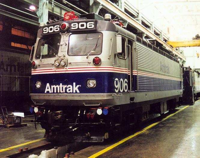 AEM-7 906 AEM-7 906 in the Phase IV paint seen in the Wilmington, DE shops, Spring 1999.