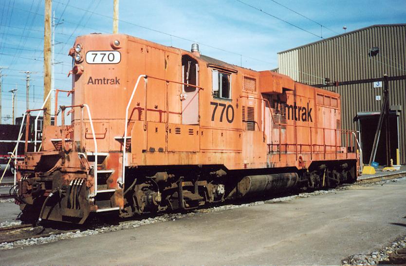770 Amtrak work enginer 770 in the Pumpkin orange scheme seen in the Wilmington, DE yard circa 1999. Photo by Doug Allen.