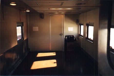 Here is the "Lounge" section of Dorm Lounge (former 10&6 sleeper) 2503. Beech Grove never competed the Lounge section of the car as the plan didn't work out for the cars; the Lounge section in the test car proved to be extremely noisy along with other problems. The other section of the car behind the door is composed of the original setup of the 10&6, with bedrooms for the crew. 2/1/98