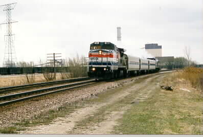 Heres a shot by Keith Schmidt of an Amtrak Dash 8-40BWH leading a Hiawatha Service train.