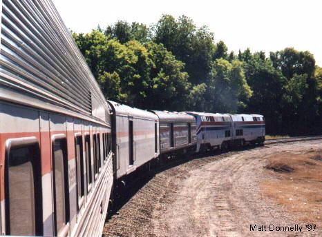 These pics are of the Lake Shore Ltd September 97. The first shot is making the bend around the Albany yard approaching the station, and the second is somewhere between Schenectady, NY and Albany, NY.