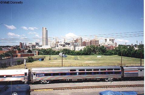 Here's a shot of the Lake Shore's Boston Viewliner seen arriving Albany June 97. The skyline of Albany makes a great background