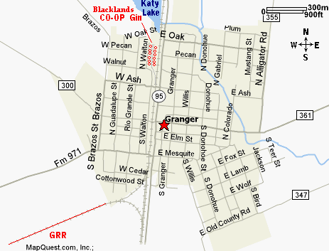 Map of Granger, with GRR railroad spur to Georgetown. Map courtesy of Mapquest