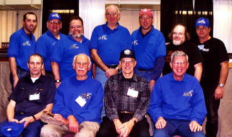 What a motley collection of model railroaders! Here's everyone from the club who was there on Sunday. Back row, from left to right: Mike Boucher, Larry Grant, Dave Taylor, Gary Cliborn, Jimi Smith, Paul Taylor, Bill Wheeler. Front Row, from left to right: Ernie Gay, Dave Waddington, George Muller, and Bill Pirtle.