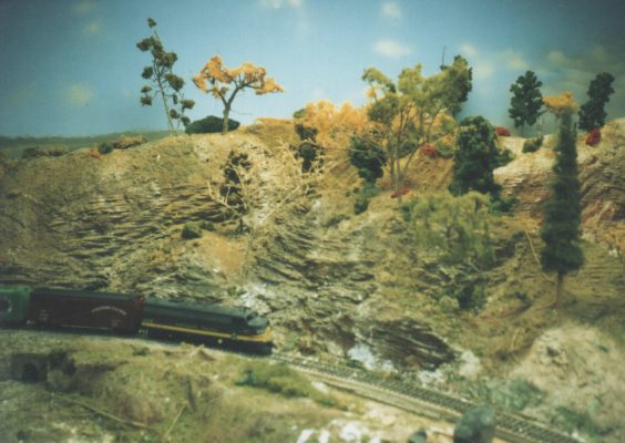 Cannon River Valley. 30 years in the Artillery means we feature the Cannon. The Cannon River flows into the Rumansota from the right as you enter the train room. The tracks that follow the River are great for railfanning, and the DCC sound systems echo through the valley for a great effect. |