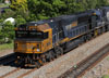 9027, leading 9214 and 91 empty coal hoppers, passing