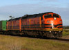 CLP17, originally CL8, named 'Arabana', features "Australian Southern Railroad's" 'black and orange' livery with GWA logos. It is owned and operated by Aurizon. Last sighted 13th September 2024 Down Freight trailing GWA006, leading a crew car, 10 well wagons, 24 container/flats and 8 empty flats, passing through Pura Pura. |