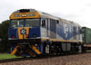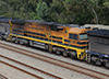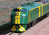 The "GM" Class locomotive, road numbers 1-11 (four axle motored 'F class') and 12-47 (six axle motored 'S class'), are ex-Commonweatlh Railways, now owned by various companies. The power of the 'F class' units is 1500hp and of the 'S' class units is 1800hp. More Information.