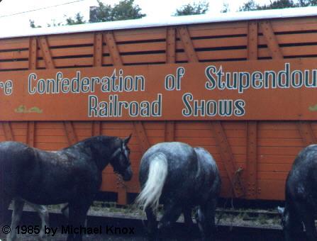 It was a very warm and humid day so the horses were let out of the car to get some fresh air.