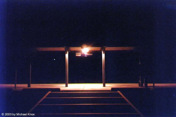 Night shot of Amtrak station.