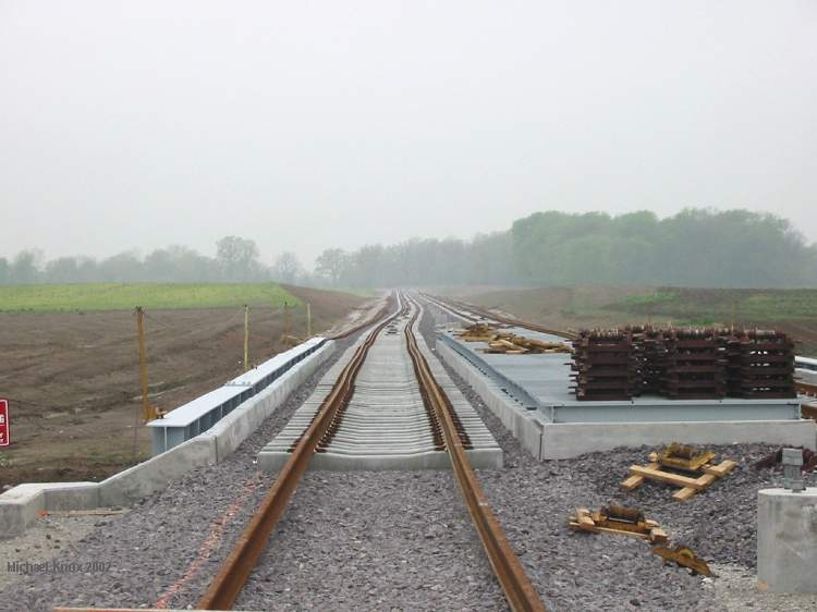 MetroLink station. Looking north (eastbound) at IL 161 overpass.