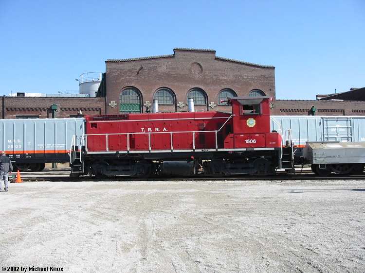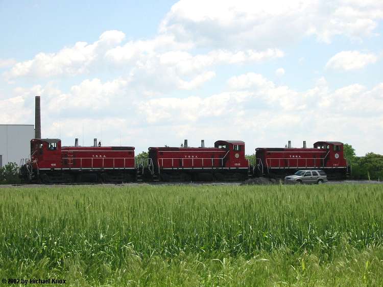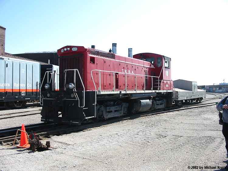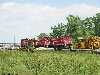 Switchers passing track workers at CP Jct at the south end of Terminal Yard. |