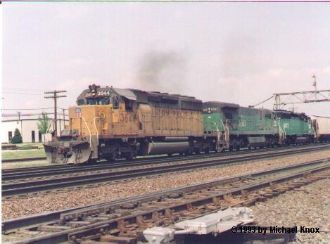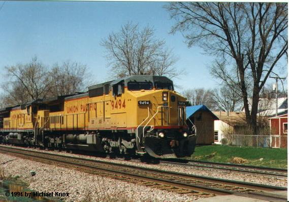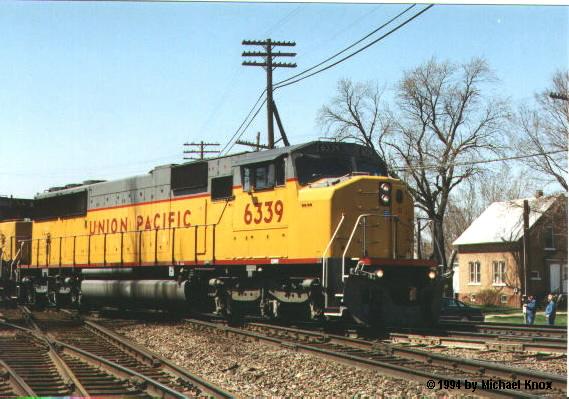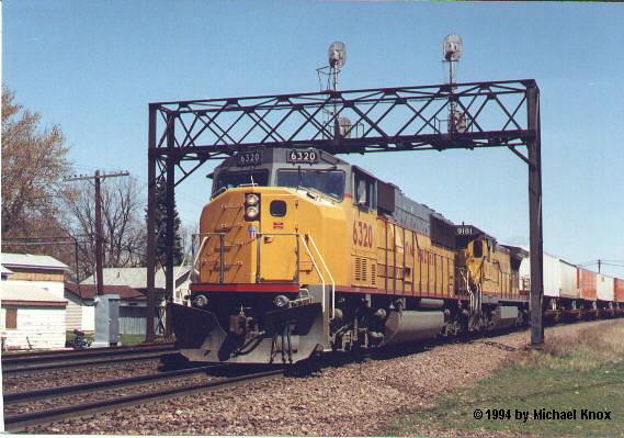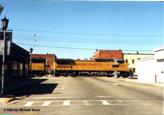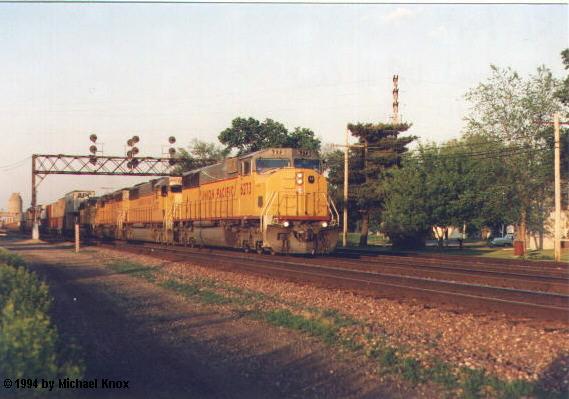 EB UP on CNW crossing "Main St." in downtown Rochelle. |