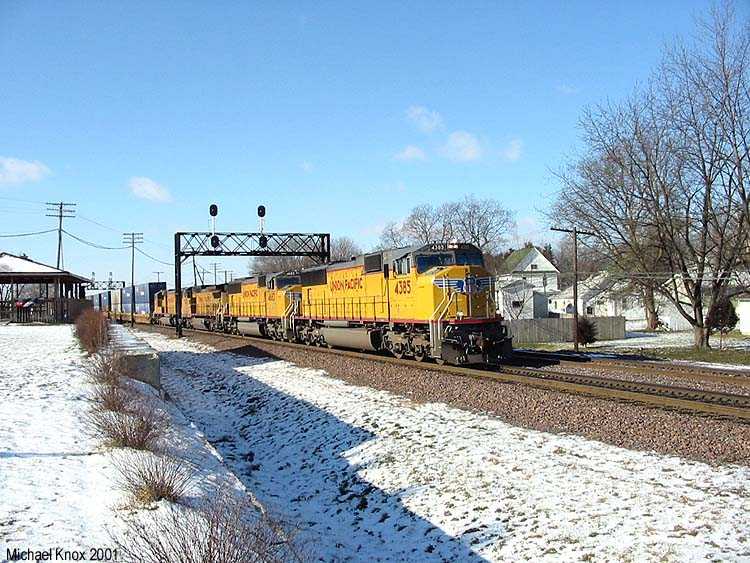 WB UP stack train leaving CNW's Proviso Yard. |
