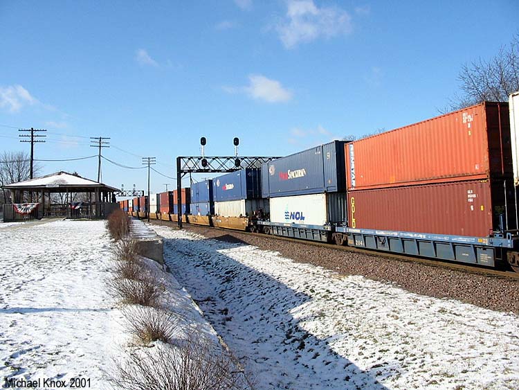 Double stacks passing by RR Park. |