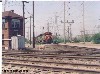 stack train across the UP (C&NW) Northwest Line Diamonds at DeVal Tower. |