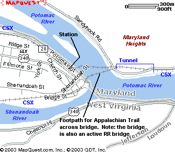 Appalachian trail crosses the Potomac River on a walkway built onto the CSX