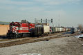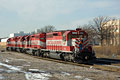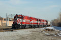 The Wisconsin & Southern's daily Chicago-Janesville train made a rare daylight departure from Chicago's Galewood Yard, where it had been laid up overnight. After moving a bad-order car in the yard, the train began its journey north on the CP's C&M Subdivision shortly after noon.