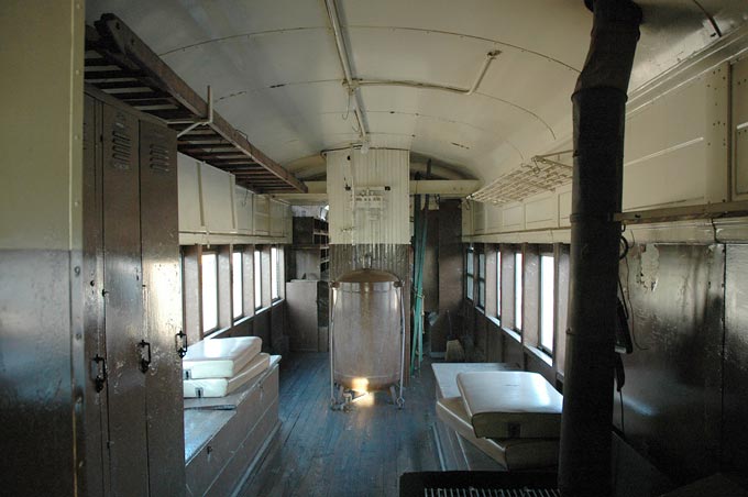 And the view from the other end, where the crew quarters are located. Note the coal stove in the foreground.