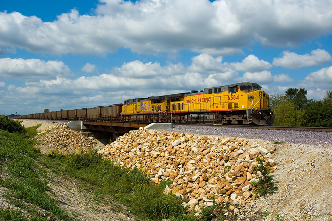Next we went to the former C&NW in Dixon and along came this westbound merchandise train with a former C&NW SD40-2 leading.