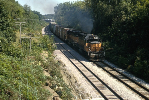 Milwaukee Road freight thunders west near Elgin IL on the old D&I Division.